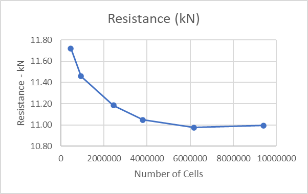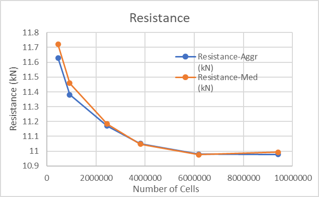 Again, note that while the resistance for the Coarse grid was only 6.6% different than the Extra Fine grid, that doesn’t necessarily imply that it is suitable, even for a rough estimate. The grid may be too coarse to accurately capture a hydrodynamic phenomenon that could cause the results to be very different (e.g., a step ventilating with a Coarse grid when it would not with a Normal grid or in the physical world).